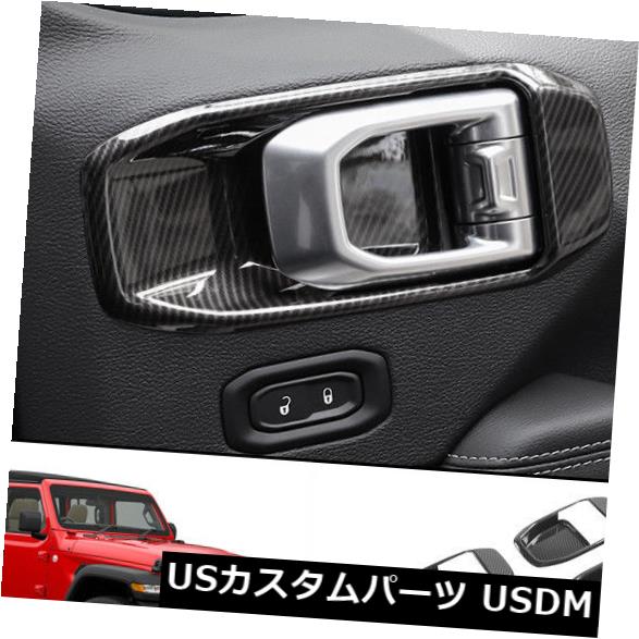 ジープラングラーJL 18-19用カーボンファイバーブラックインナードアハンドルボウルカバートリム Carbon Fiber Black Inner Door Handle Bowl Cover Trim for Jeep Wrangler JL 18-19