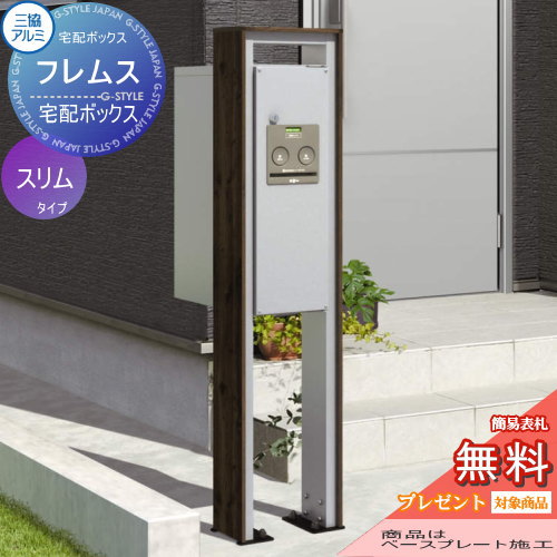 ■三協アルミ 三協立山 【フレムス スリムタイプ ベースプレートタイプ TPL】 (本体:トラッドパイン+サンシルバー) (宅配ポスト:シルバー 前入れ前取出し) ※宅配ボックス コンボ 一戸建て用 屋外 戸建て 宅配ポスト 郵便ポスト 機能門柱 機能ポール