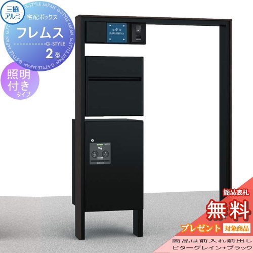 ■三協アルミ 三協立山 機能ポール【フレムス2型 照明+宅配ボックス(後出し)付き 木調タイプ】 ※宅配ボックス コンボ 一戸建て用 おしゃれ 屋外 戸建て 宅配ポスト 郵便ポスト 機能門柱 機能ポール 照明 LED 表札 エクステリア 送料無料