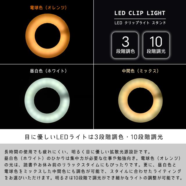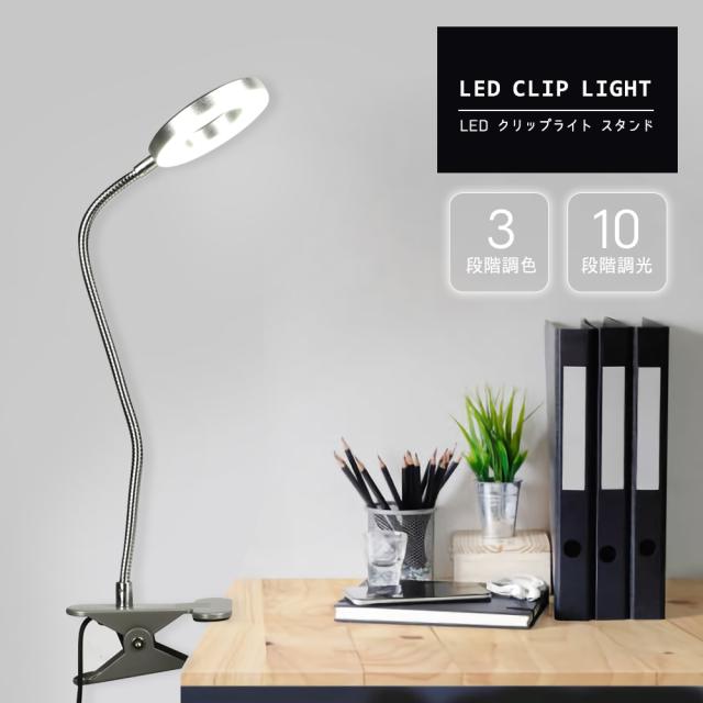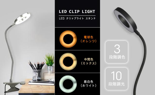 LED クリップライト スタンド スポットライト 7W デスクライト 電気スタンド 昼光色 電球色 3段階調色 10段階調光 省エネ フレキシブル アーム