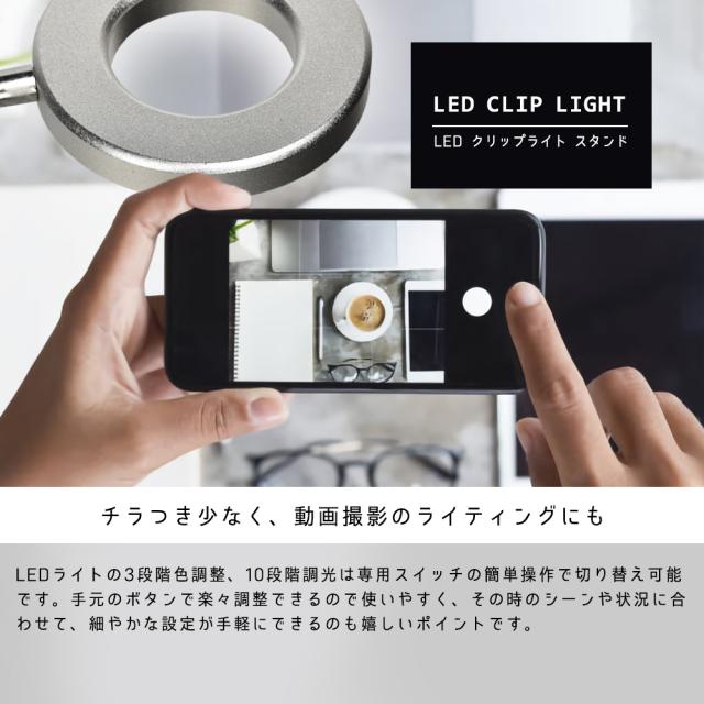 多用途クリップでカンタンにスペースを取らず取り付けできる、人気のLEDクリップライトです。 リングライト内径:約8.7cm