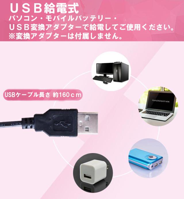 USBポート給電ができて電池は不必要。どんな場所でも使いやすいです。