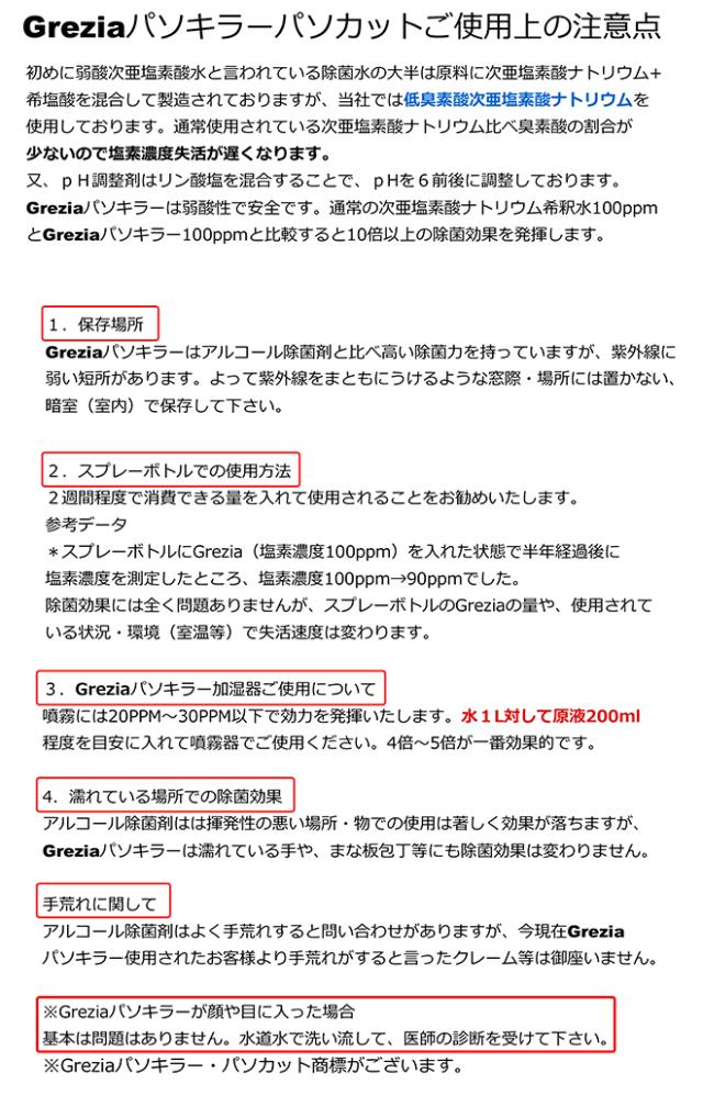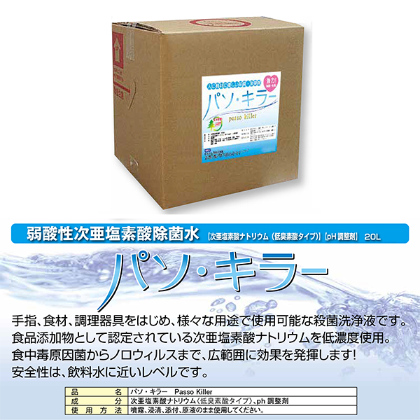 ノンアルコール殺菌洗浄液 弱酸性次亜塩素酸除菌水 Grezia パソキラー20L