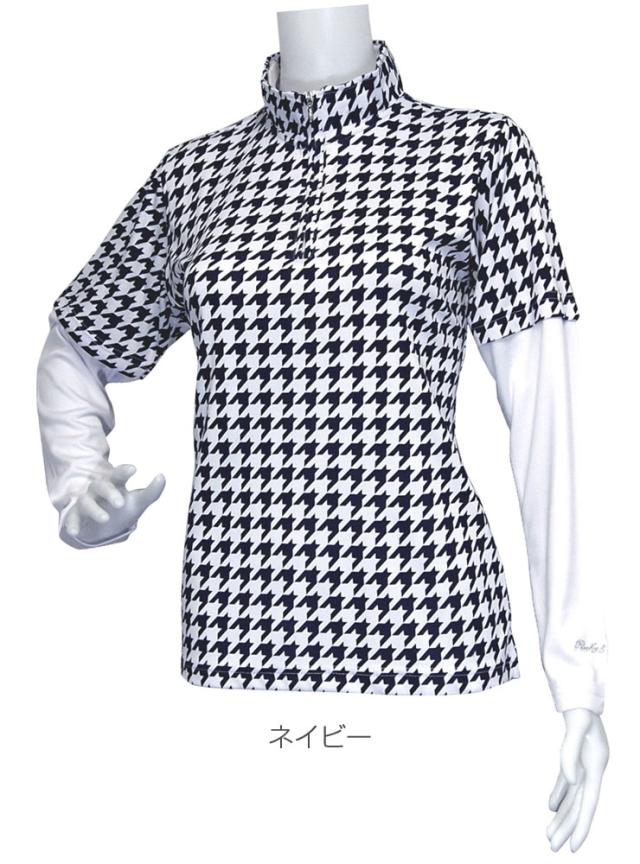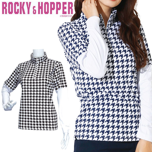 ロッキー&ホッパー レディース ゴルフウエア 千鳥柄 ハーフジップ ハイネック レイヤード 長袖シャツ RH-1758SL 2020年春夏モデル M/L