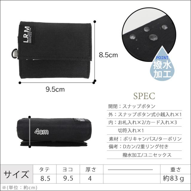 さいふ サイフ 紳士財布 折り畳み財布 紳士用 L.R.M かっこいい 簡易防水 ターポリン Dカン カラビナ ビジネス スポーツ 使いやすい 短財布 小銭入れあり 定期入れ ミニマムウォレット 手のひらサイズ ボックス型 ユニセックス お祝い ギフト 贈り物 プレゼント