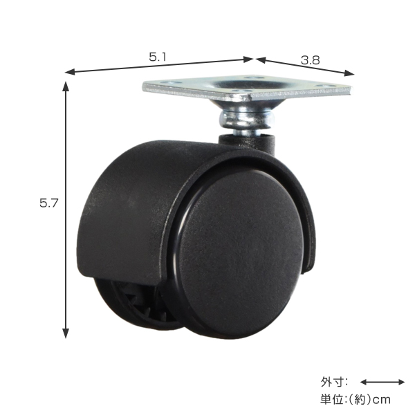 | 材質 | キャスター:鉄(ユニクロメッキ)、ナイロン 両面テープ:ゴム系接着剤、ポリエチレン発泡体 |