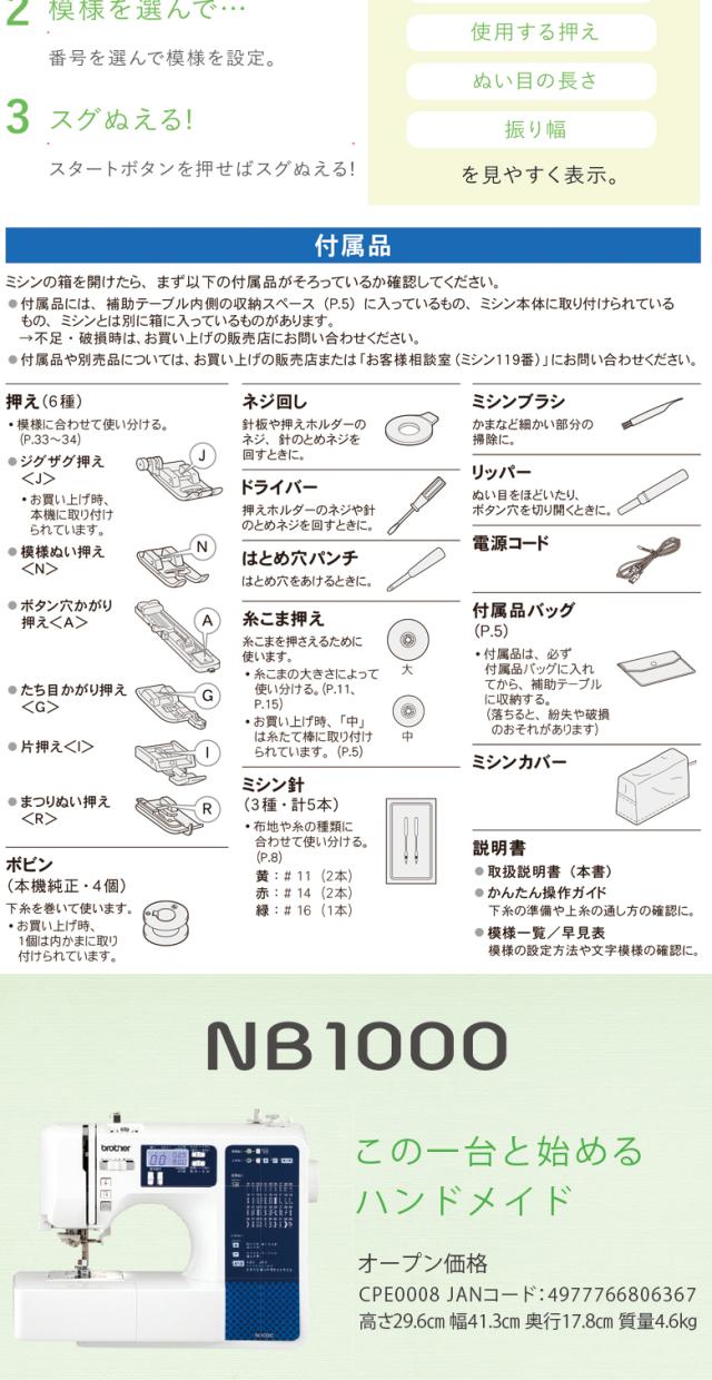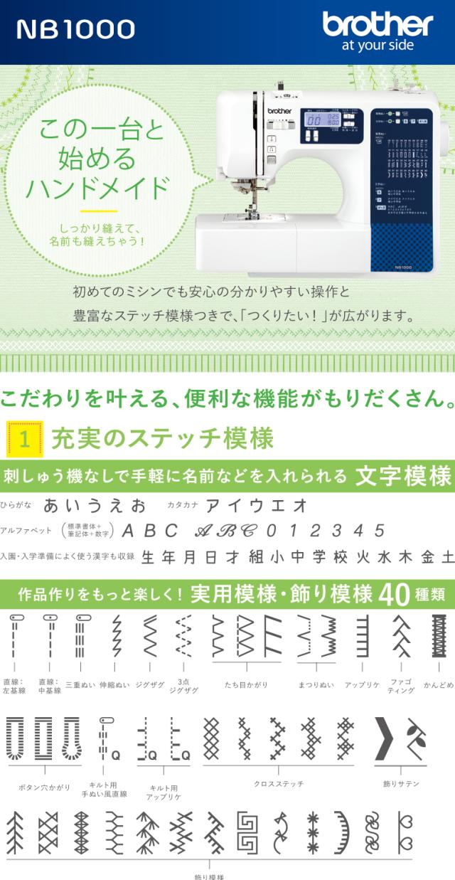 ブラザー コンピュータミシン NB1000 NB-1000 送料無料・代引手数料無料 文字縫い かんたん糸通し エラーメッセージ機能搭載