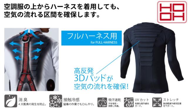空調服の上からハーネスを着用しても空気の流れる空間を確保する高機能インナー!!