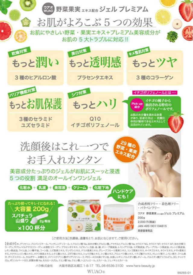 【送料無料】6個セット ウアオ 野菜と果実エキス配合ジェル プレミアム 200g|5inジェル 化粧水+美容液+乳液+クリーム+化粧下地|野菜果実|