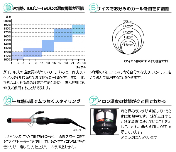 アイビルDHカールヘアアイロンは、サロン専売品にとどまらず、神戸コレクションや東京コレクションにも参加しているトリコインダストリーズの一押し商品です。 セラミックコーティングで、髪にも引っかかりにくく、遠赤外線で短時間で巻き髪を仕上げます! ![]() |