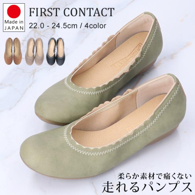 ファーストコンタクト パンプス 痛くない 疲れない ローヒール バレエシューズ 39090 レディース 日本製 靴