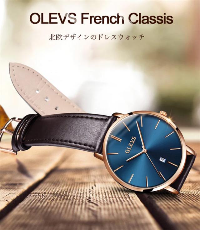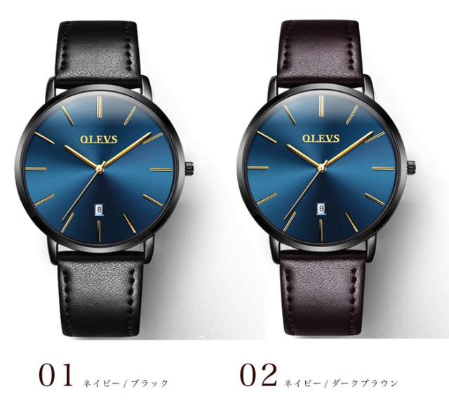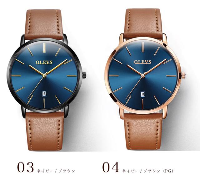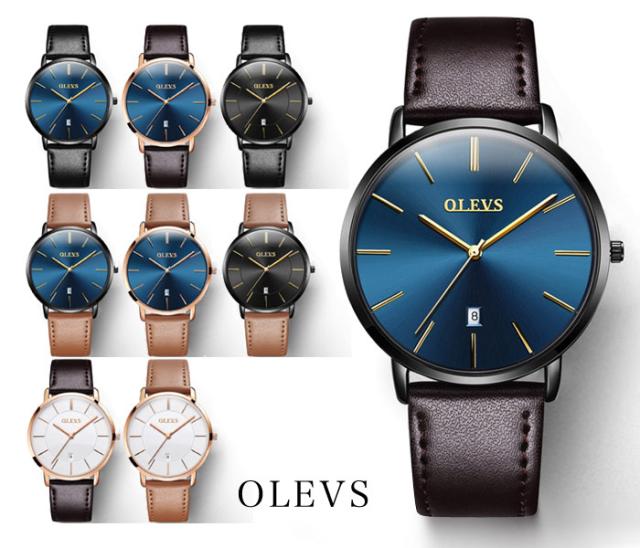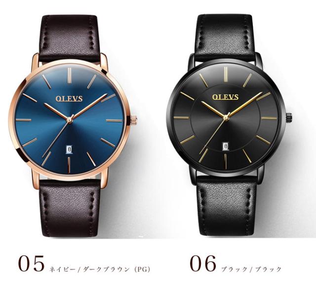メンズ 腕時計 北欧デザイン 超薄型 ブランド OLEVS オレブス かっこいい おしゃれ デザインウォッチ ブラック ホワイト ネイビー ギフト プレゼント メンズ腕時計