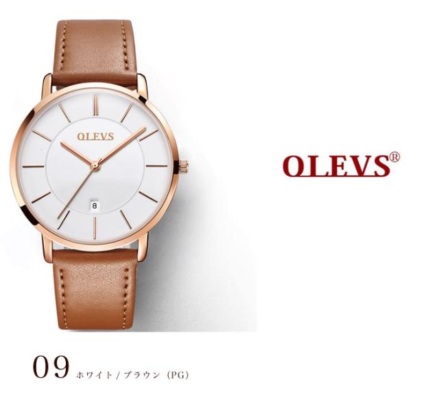 シンプルなデザインでドレスアップされたOLEVSデザイン腕時計フォーマルなデザインと品質の高い素材が魅力のファッションウォッチ「OLEVS」フェイス幅38mmに厚みが6.5mmの超薄型ケースは、シンプルなデザインながら、品おあるこの存在感。ベルトは牛革を採用しており、手首に優しくフィット。本革なので経年劣化も楽しめます。またムーブメントは日本製ムーブメントを搭載し裏蓋やバックルはステンレススチールが使用されており、末永く愛用頂ける高品質なモデルです。文字盤のカラーやベルトカラーの組み合わせも豊富で、9種類のバリエーションからお選びいただけます。専用のボックスも付いているからギフトにもおススメです。フェイスサイズ:38mm(リューズ含まず)着用可能サイズ:165〜215mmムーブメント:クオーツ(日本製)素材 ステンレス、チタン合金、牛革防水性:3気圧防水(生活防水)付属品:腕時計ボックス保証:お買い上げより1年間商品カテゴリ:腕時計 メンズ腕時計 デザインウォッチ かっこいい ブラック ホワイト ネイビー 日本製ムーブメント ギフト プレゼント 誕生日 贈り物 祝い メンズ 男性用 レディース 女性用