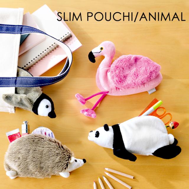 スリムポーチアニマル フラミンゴ ポーチ 化粧ポーチ バッグインポーチ 小物入れ アニマル ハリネズミ パンダ ペンギン