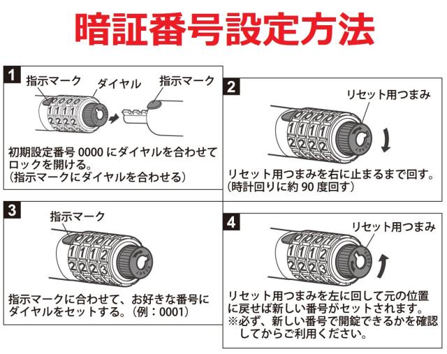 ■好きな4ケタの数字が設定できるナンバーセット式。