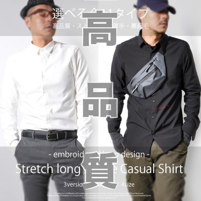 期間限定 SALE 高品質 ストレッチ 長袖シャツ 裏起毛 ロゴ 刺繍 光沢 シンプル カジュアル ビジネス メンズ トップス[11色]#Tset03 M便