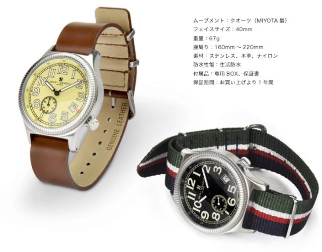 SMART TURNOUT 長い歴史と伝統を誇るイギリスの軍隊や学校、大学のカラー を組み合わせた独特なブリティッシュスタイルが特徴の SMARTTURNOUT(スマートターンアウト)。 コチラのモデルは上品なスタイルのレザーベルト仕様と カジュアルな着こなしが可能なナイロンベルトの2種類を付け替えることが可能なモデル。 ベルトの取替方法は通常のナイロンベルトと同じ仕組みと なっており、革ベルトからナイロンベルトへ、またナイロンベルトから革ベルトへも瞬時に付け替えが可能です。 またミリタリーテイストを強調する独特なベゼル 「コインエッジベゼル」を採用。 ミリタリー色を伺わせながらも、スーツ姿にも普段着にもマッチする、この腕時計は様々なデイリーシーンで活躍可能。 こだわり派のアナタへ最適な腕時計です。ムーブメント:クオーツ(MIYOTA製)フェイスサイズ:40mm重量:67g腕周り:160mm〜220mm素材:ステンレス、本革、ナイロン防水性能:生活防水付属品:専用BOX、保証書保証期間:お買い上げより1年間