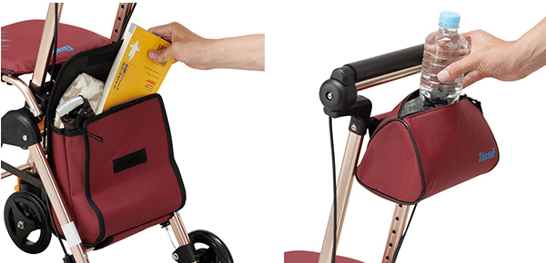 自立歩行が可能な方を対象とした歩行補助用具です。より安定して歩行が出来るよう補助的にお使いいただけます。お散歩やお買い物にも便利なバッグや小物入れ、休息に用いる座面など利用者のことを考えたさまざまな機能が、生活を快適にしてくれます。SGマーク認定商品なので安心してご使用いただけます。