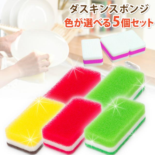 送料無料ダスキン台所用スポンジ抗菌タイプ 色が選べる5個セットとエコスポンジミニのセット