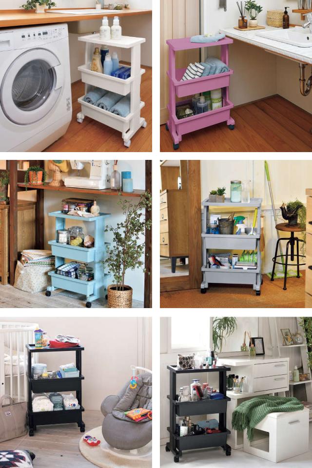 キャスター付きだから移動が楽チン、好きな場所にいつでも気軽にサッと持ってこられるのが魅力のワゴンです。普段は邪魔にならない場所に置き、使いたい時にそばへ寄せて使用できるのでとても便利!作業効率がアップします。