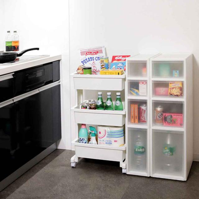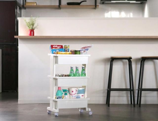 キッチンはもちろん、リビングやランドリーなどさまざまなシーンで活躍します。プラスチック製なので、水回りでも安心してお使いいただけます。