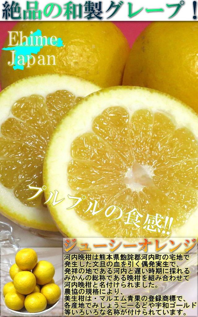 | 特徴 | 豊富な果汁と爽やかな甘さが魅力の和製グレープフルーツ「河内晩柑」です!柑橘の大産地である愛媛県から、新鮮な果実を直送でお届けします。 |