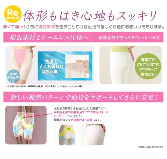 従来品に比べてヒップにあるベルトを幅広にしたことで、立体的により上がったヒップにみせれるようになりました。また、従来品に比べて通気性も60%アップしました。さらに、綿混素材を取り入れた生地を採用し、シームレス仕様で快適な履き心地を実現しました。