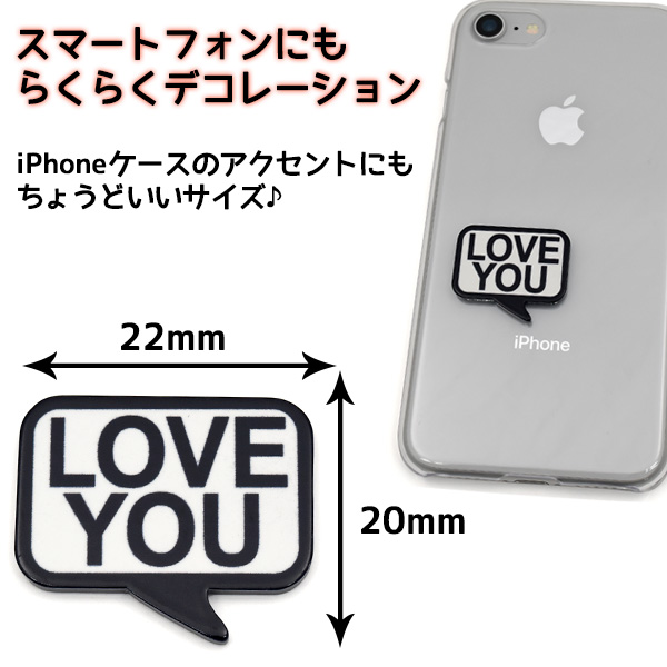 吹き出しと「LOVE YOU」がおしゃれなデコレーションパーツ。スマホケースや手帳などをお好きにデコレーションして頂けます。