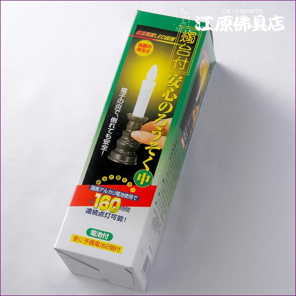 安心の電池式ローソク ろうそく(中)1本立ち『茶色』燭台付 家具調仏具 モダン仏具