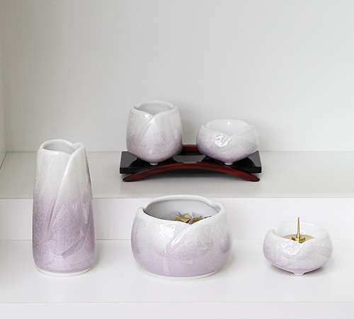 やわらぎ九谷銀彩(パープル)5点セット モダン仏具セット 家具調