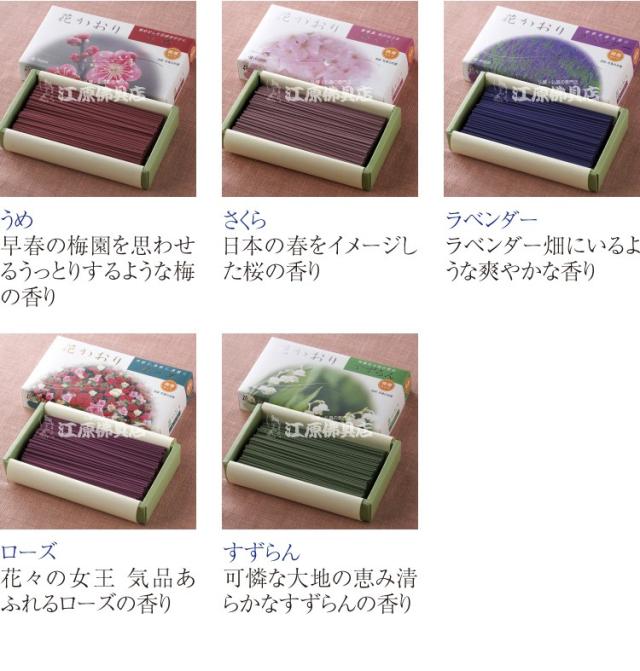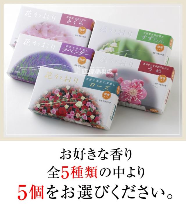 『送料無料』花かおり 選べる5個セット(うめ・さくら・ラベンダー・すずらん)お香 線香 薫寿堂
