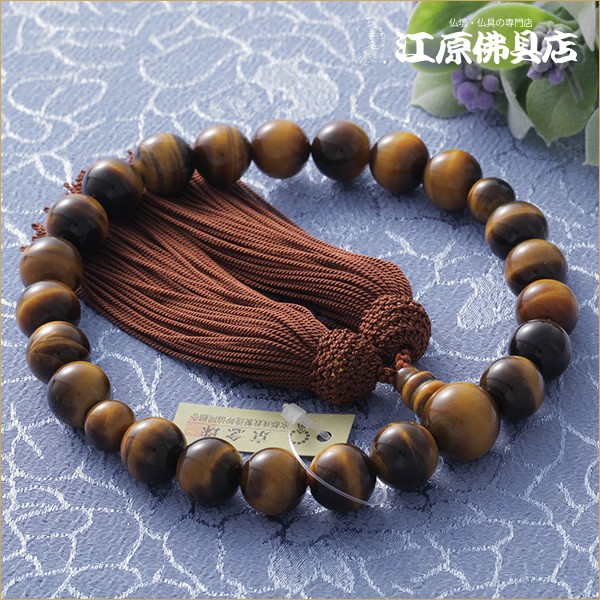 『メール便OK』虎目石22珠(1級品) 正絹頭付『紙箱入り』赤こげ茶色房京念珠 男性 念珠 数珠 男性