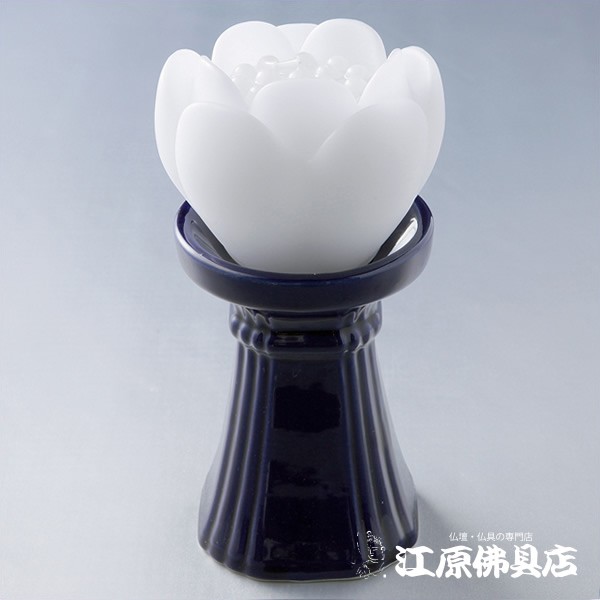 ・蓮の花は泥沼の中にあっても泥をはじき、自らを汚す事なく咲いています。『世の中(環境)がどんなに汚れていてもそれに染まる事なく清らかに生きることが極楽へ帰れる方法である』と、釈迦は蓮の花に例えて説きました。※芯糸に特殊加工(オートストップ加工)を施しており、底部で炎が自動的に消えます。《燭台は花器してもご使用いただけます。》