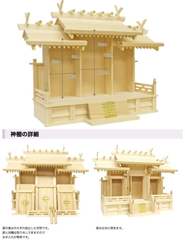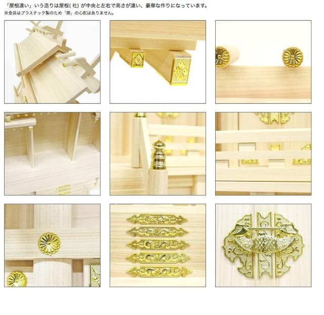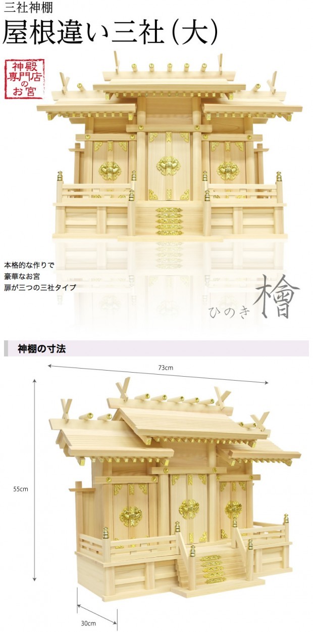 三社神棚 神殿専門店のお宮 屋根違い三社(大)ひのき