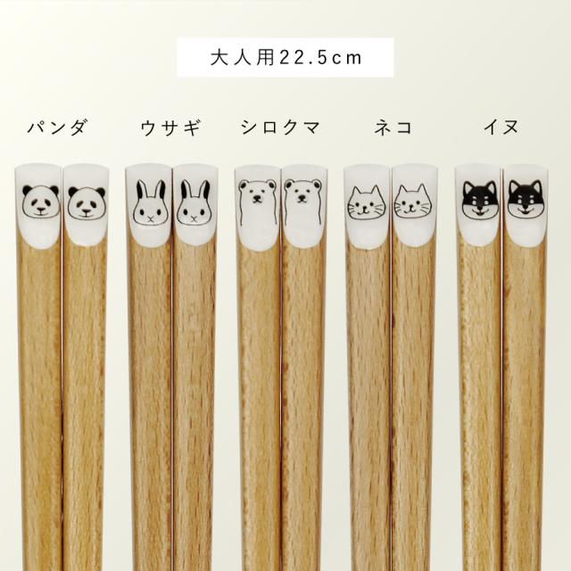 思わずニコニコ笑顔になる、アニマル柄のかわいいお箸。大人用22.5cmと、子供用18.0cmのバリエーションで家族みんなでお揃いで楽しめます。