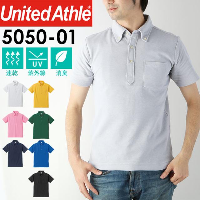 ユナイテッドアスレ ポロシャツ 通販 半袖 レディース メンズ 無地 ボタンダウン ポケット付き ビジネス 通勤 通学 消臭 UVカット 吸水 速乾 5.3オンス ドライカノコ United Athle トップス