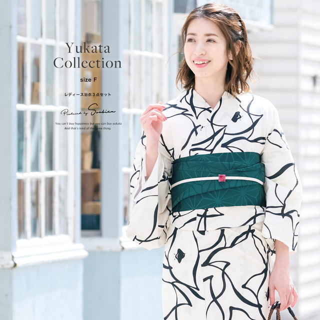 こちらの商品は、浴衣・帯・下駄の3点セットです。セット内容の一部変更や、それに伴う値引きは承っておりません。
