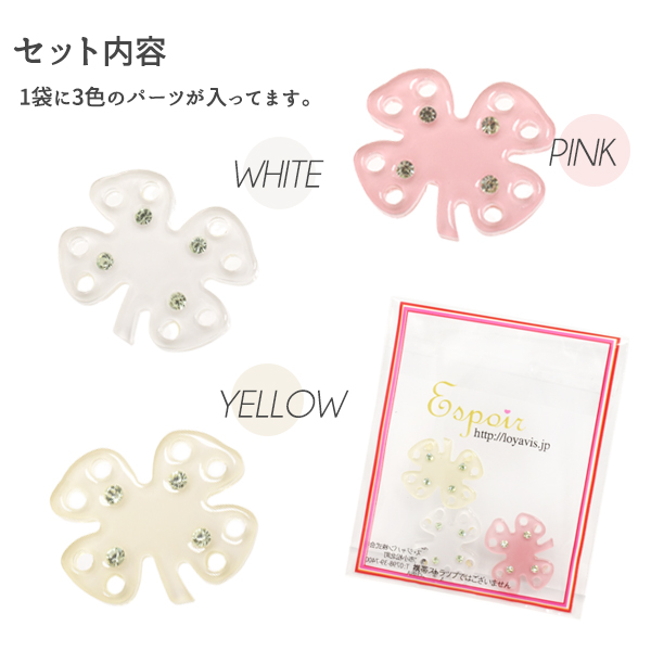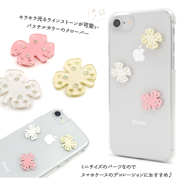 デコパーツ クローバー ミニサイズ 3個セット かわいい オシャレ 華やか パステルカラー デコ 小物作り プチDIY デコレーションパーツ オリジナルケース 作成素材 可愛い きらきら