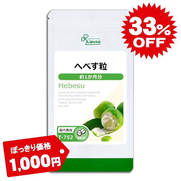 ぽっきりセール へべす粒 約1か月分 T-752 (180粒) 送料無料 健康 柑橘 クエン酸 サプリ リプサ Lipusa 公式 agesugi_sbe