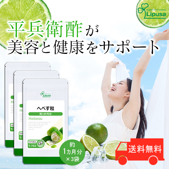へべす粒 約1か月分×3袋 T-752-3 (180粒×3袋) 送料無料 健康 柑橘 クエン酸 サプリ リプサ Lipusa 公式 agesugi_sbe