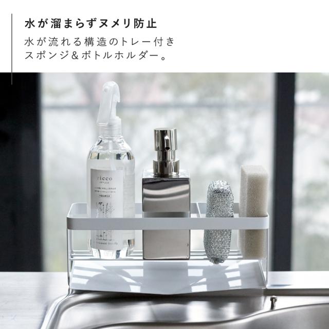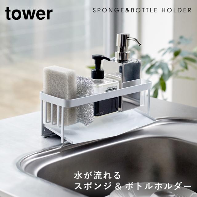 tower 水が流れるスポンジ&ボトルホルダー タワー 山崎実業 tower 水が流れる スポンジ ラック スポンジホルダー シンク キッチン おしゃれ モノトーン ホワイト ブラック 5016 5017