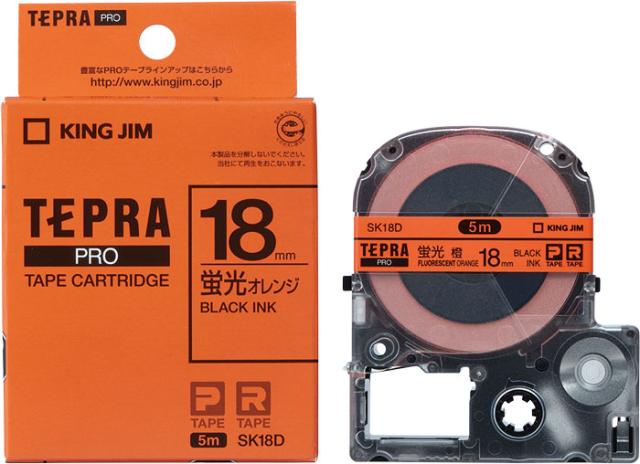 キングジム PRO テープカートリッジ カラーラベル(蛍光色)(18 幅/オレンジ/黒文字) SK-18-D(K.J)返品種別A