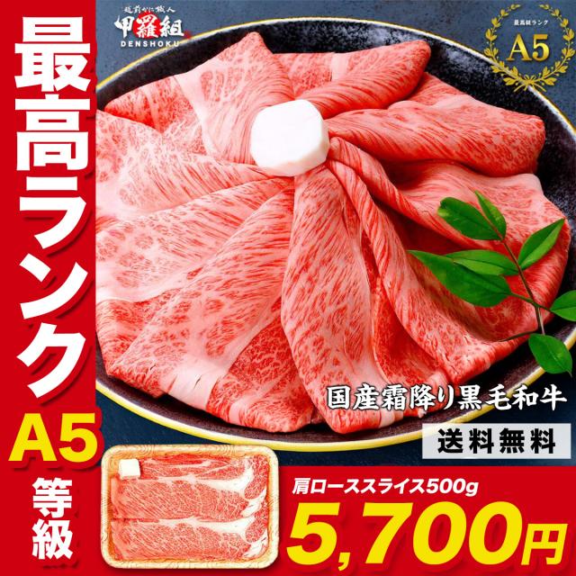 黒毛和牛A5等級の肩ローススライス500g 約2〜3人前