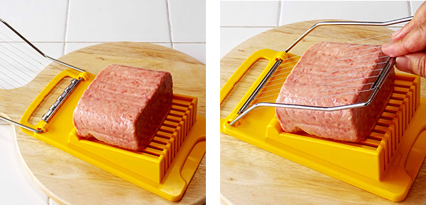 ●ランチョンミート(スパム)をスパッと均等に切れるスライサーです。