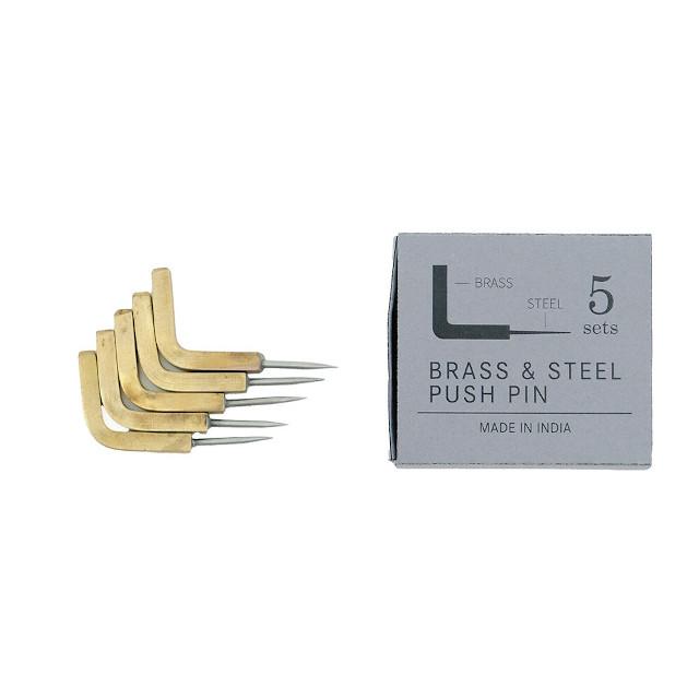 【shesay】BRASS&STEEL プッシュピン L字フック 305119 5個入【志成販売 インテリア 文具 壁面装飾 飾りプッシュピン プッシュピン 画びょう 画鋲 押しピン プッシュピン バレンタイン ホワイトデー 母の日 父の日 クリスマス xmas】