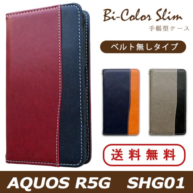AQUOS R5G SHG01 ケース カバー 手帳 手帳型 バイカラースリム スマホケース スマホカバー アクオス R5G