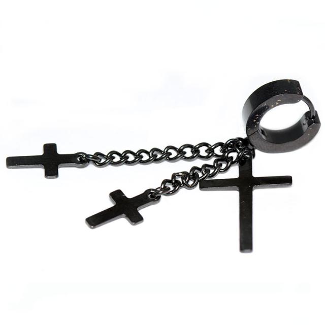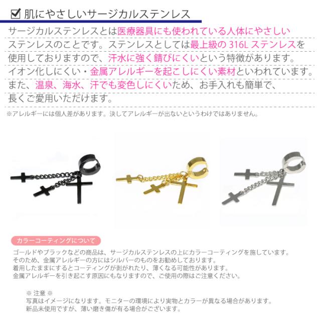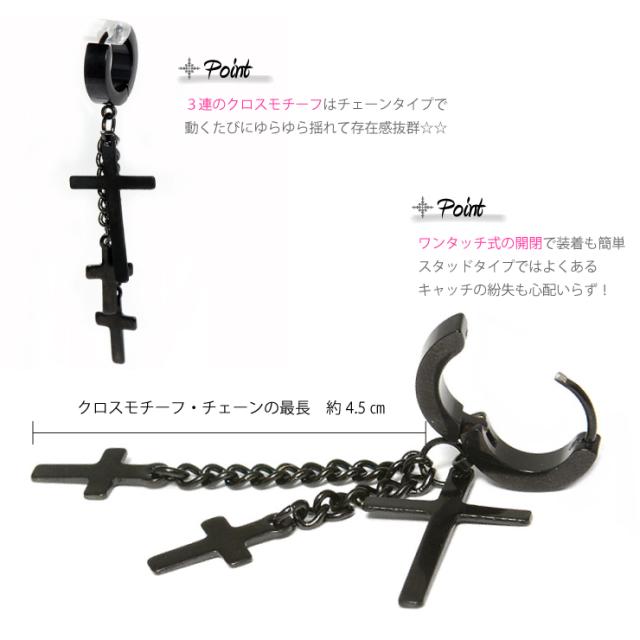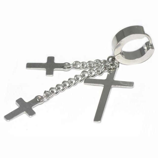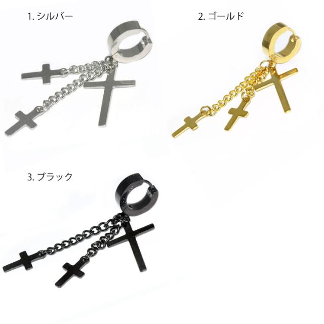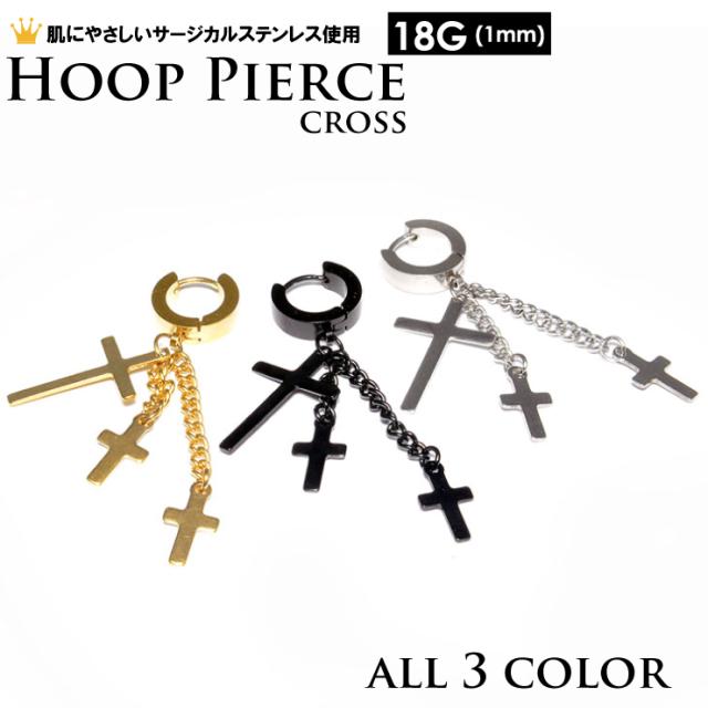 【メール便対応】フープ メンズピアス 三連クロスモチーフ 片耳用 xx-m-01 シルバー ブラック ゴールド ステンレス ピアス 【メンズ レディース 金属アレルギーがでにくいステンレス ピアス フープピアス ノンアレルギー ボディピアス】┃
