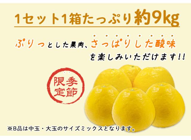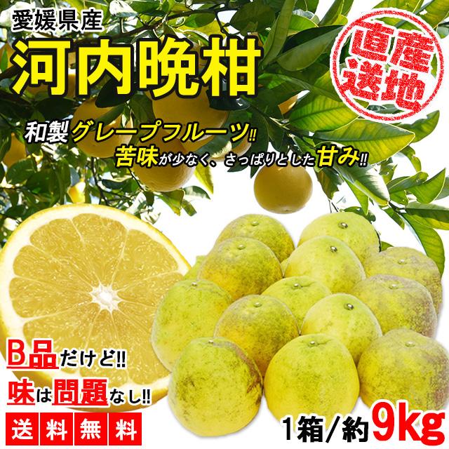 河内晩柑 訳あり 9kg 送料無料 晩柑 ご家庭用 箱買い B品 サイズミックス みかん 柑橘 フルーツ 果物 産地直送 愛媛県産 YDF-018