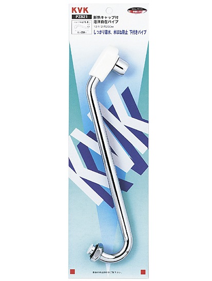 【KVK】断熱キャップ付泡沫自在パイプ 13(1/2)用 PZ821 長さ:250mm 外径:16mm 水栓部材 交換用スパウト 水はね防止 下付き用