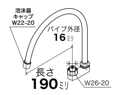 【KVK】スワン型パイプ 13(1/2)用 PZ940 長さ:190mm 外径:16mm 水栓部材 交換用スパウト